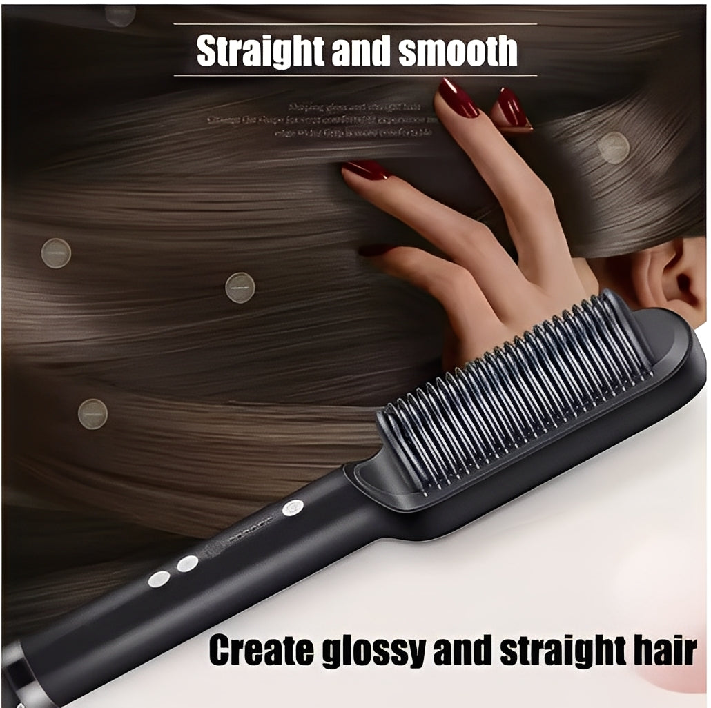 - Fácil de usar: Simplemente cepilla tu cabello para desenredarlo y alisarlo simultáneamente. Es mucho más rápido y sencillo que usar una plancha de pelo convencional.